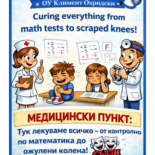 Днес в училище работиха цели 4 „медицински екипа“, които по случай 1 април извършиха профилактични прегледи на учениците… и поставиха изненадващо сходни диагнози 😄