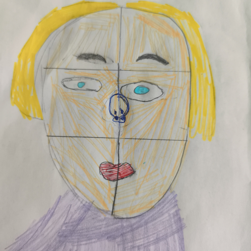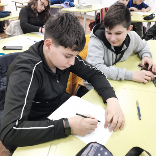 След математическата лаборатория последва творческа задача - скициране на човешко лице чрез използване на пропорционални линии и модули. Така учениците приложиха наученото на практика и осъзнаха как математиката подпомага реалистичното рисуване. Чрез скиците, които направиха шестокласниците генерираха реални лица с помощта на изкуствен интелект.