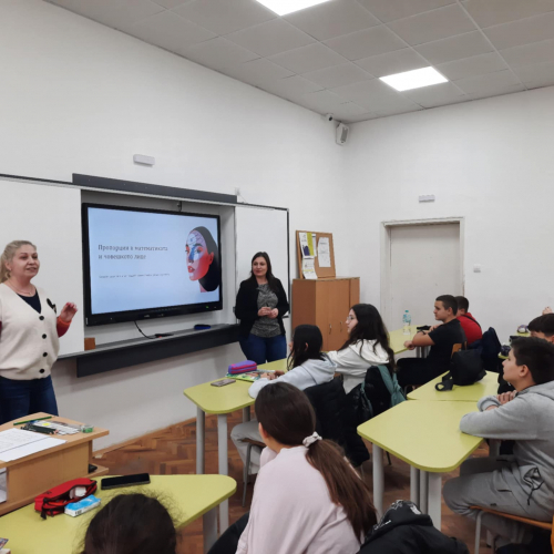 В 6. клас бе проведен иновативен бинарен урок по математика и изобразително изкуство на тема „Кодът на красотата: Математика в човешкото тяло“. Основната му цел беше учениците да открият връзката между числата, пропорциите и художественото изобразяване, като приложат математически знания в творческа дейност.